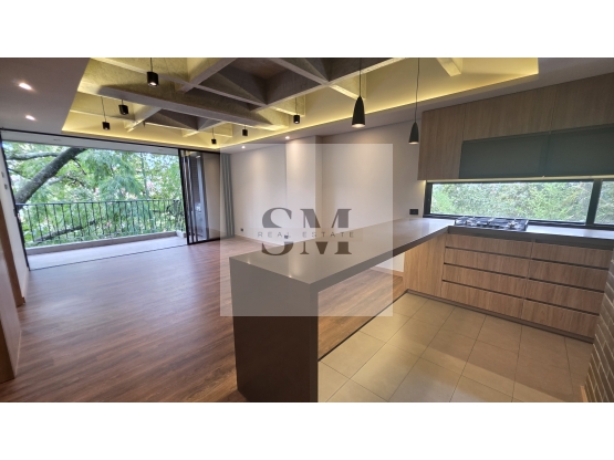 Apartaestudio para estrenar de 81.93 m² distribuidos en cocina abierta totalmente dotada, sala-comedor, balcón con vista sur sin poniente, zona de ropas, habitación con baño privado, vestier, baño social, salida de aire acondicionado en habitación y área social, 2 parqueaderos sencillos y cuarto útil.